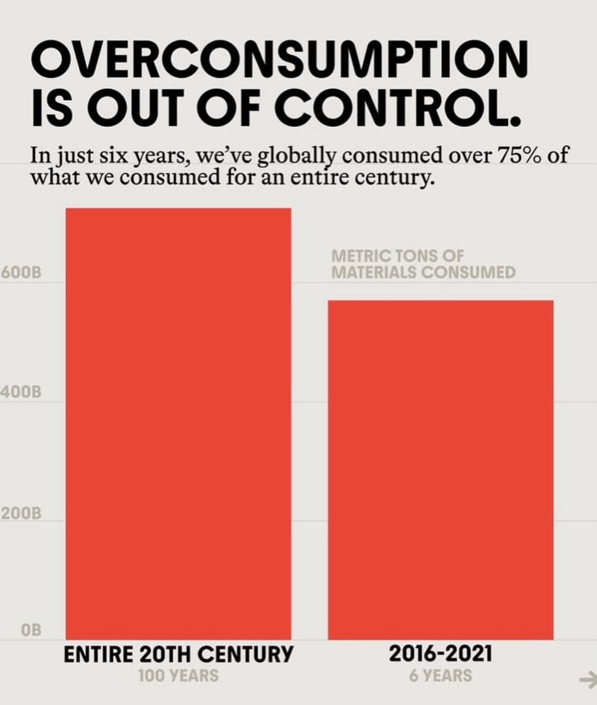 We often hear this, and we suspect it might be true, (if only by eyeing up the alarming amount of cardboard in the recycling box). But the facts are stark: from 2016-2021, we globally consumed over 75% of what we consumed in an entire century.